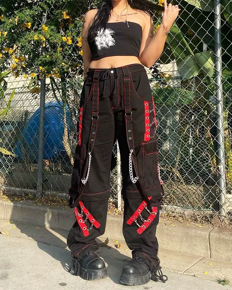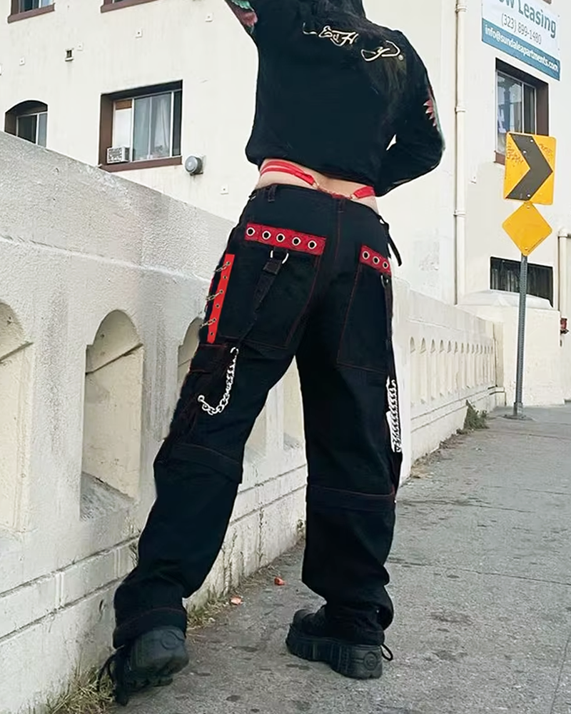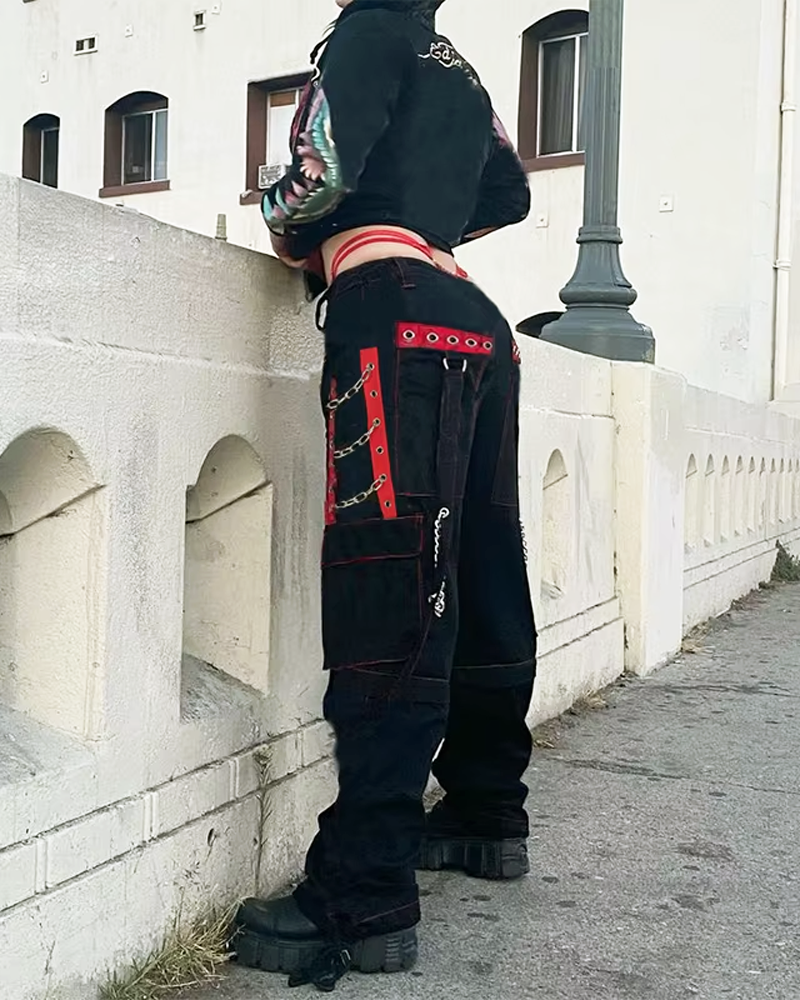 With a baggy cut and striking details, these pants are built for those who want their style to speak loudly. Pair them with chunky boots and a fitted top to complete the look.