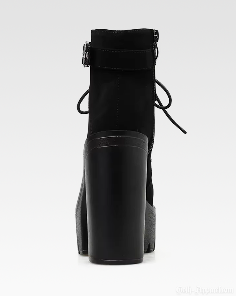 Designed with a chunky platform sole and a high structured heel, our Black Gothic Ankle Boots create an unmistakable statement. Their lace-up front and side zipper offer easy adjustment, while the ankle buckle strap adds a sharp metallic finish.