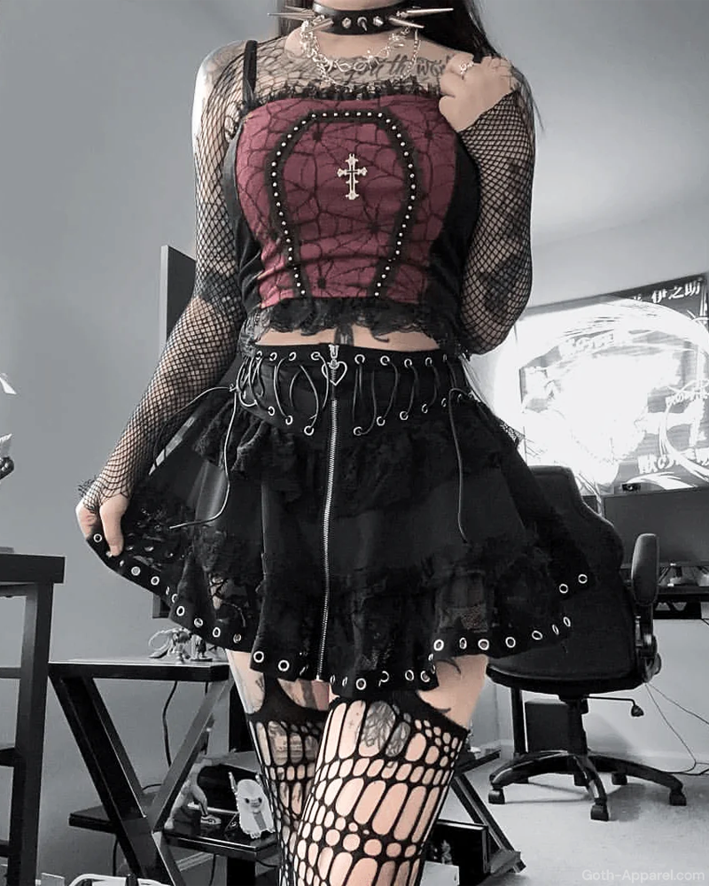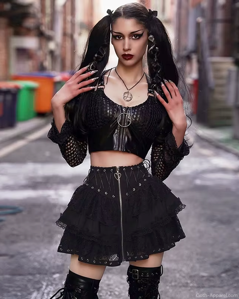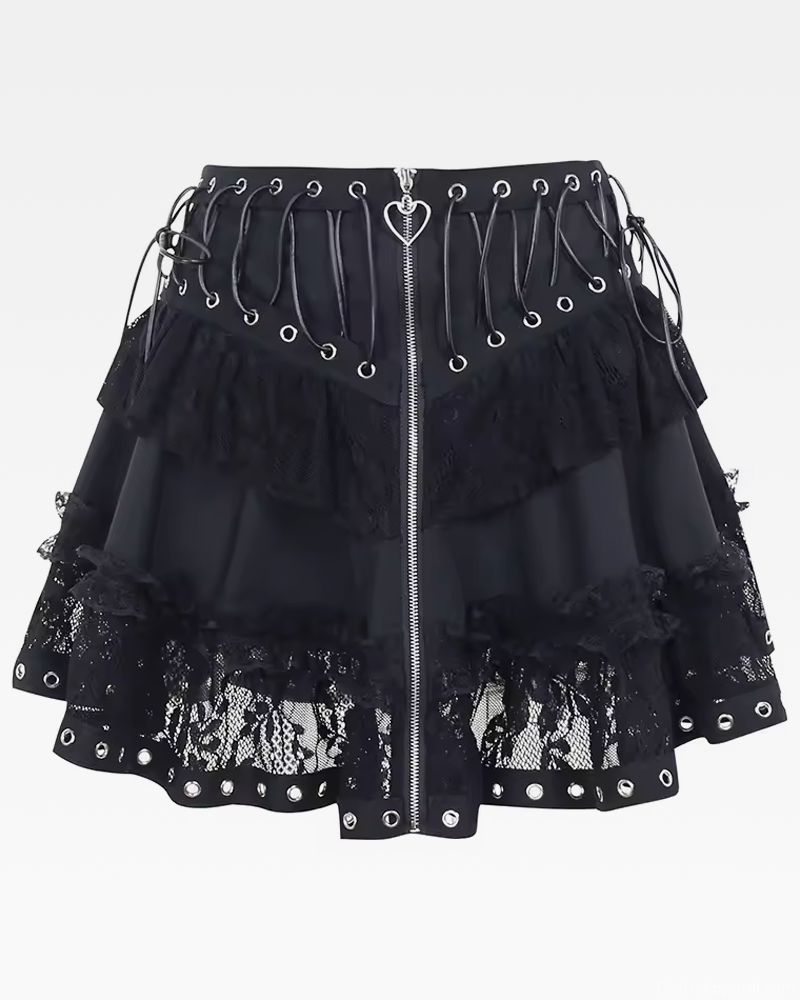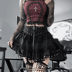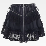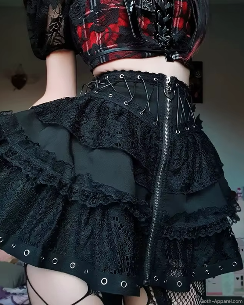 This skirt brings together lace, attitude, and dark romantic energy. With its corset-style waist and layered ruffles, it's made for those who live and breathe the gothic spirit with confidence.