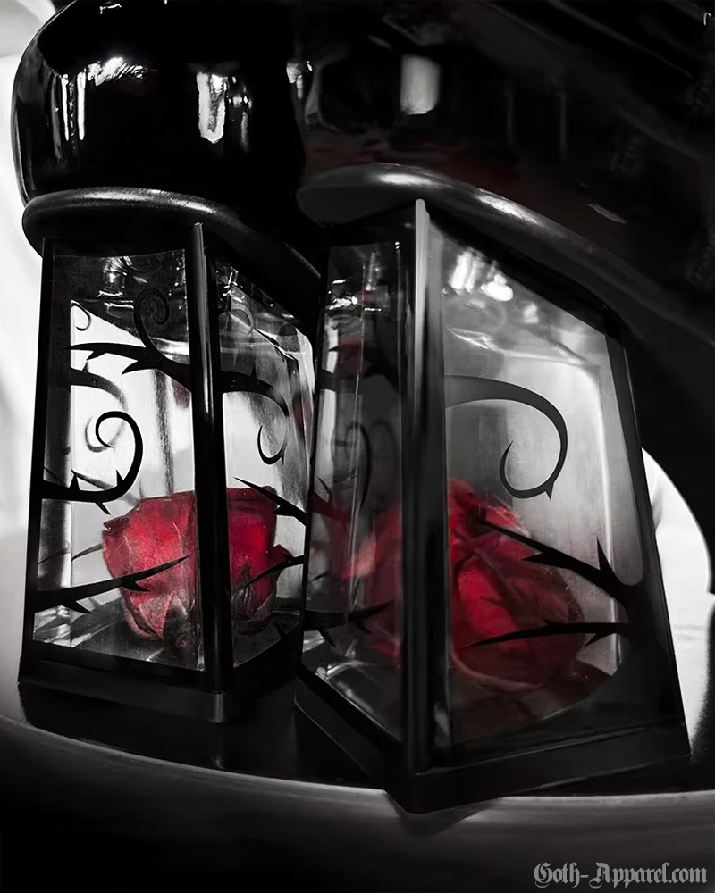 Made from vegan leather with a glossy black-to-red gradient, these Black Patent Mary Jane High Heels feature double straps detailed with gemstone buckles. Their transparent block heels reveal an embedded rose design, adding a striking gothic touch to any outfit.