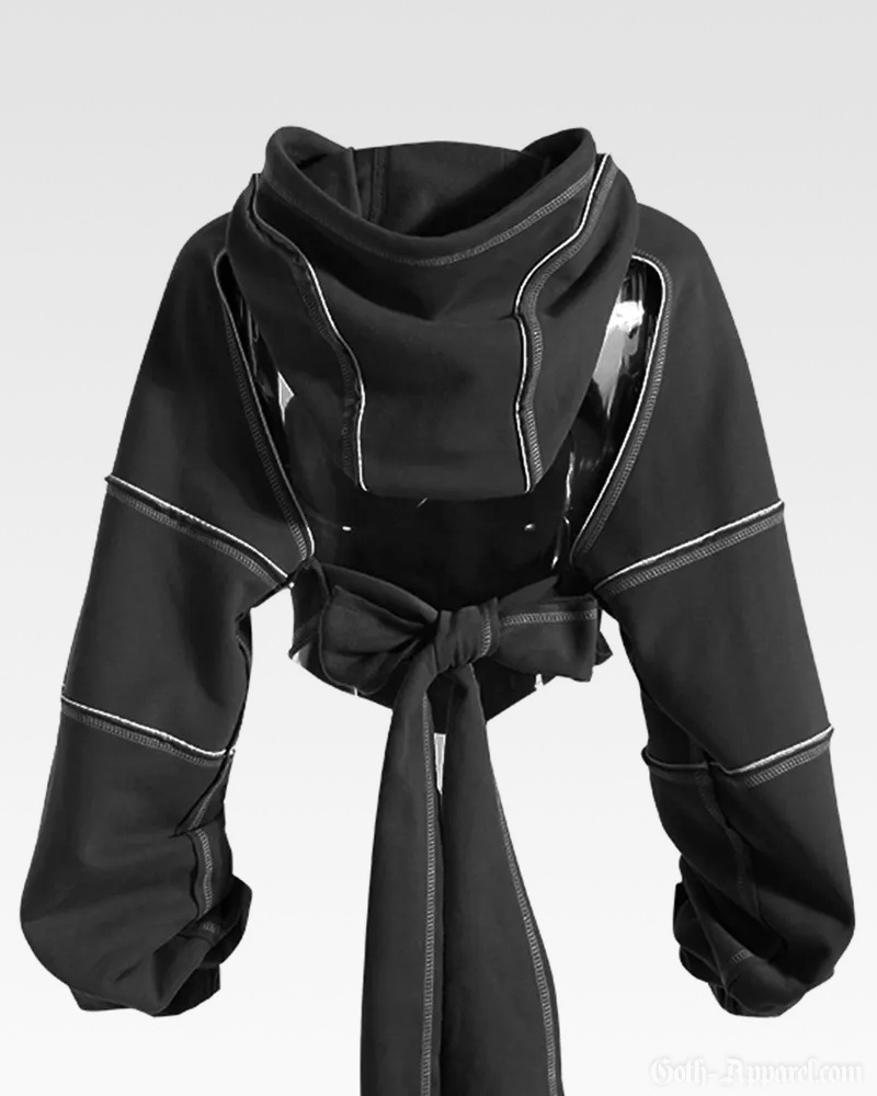 Made from cotton and polyester, our Crop Cut Out Hoodie features a cropped fit with cut-out chest panels and contrast seam detailing. Their adjustable hood, kangaroo pocket, and open-back tie closure keep it practical while maintaining a bold silhouette.