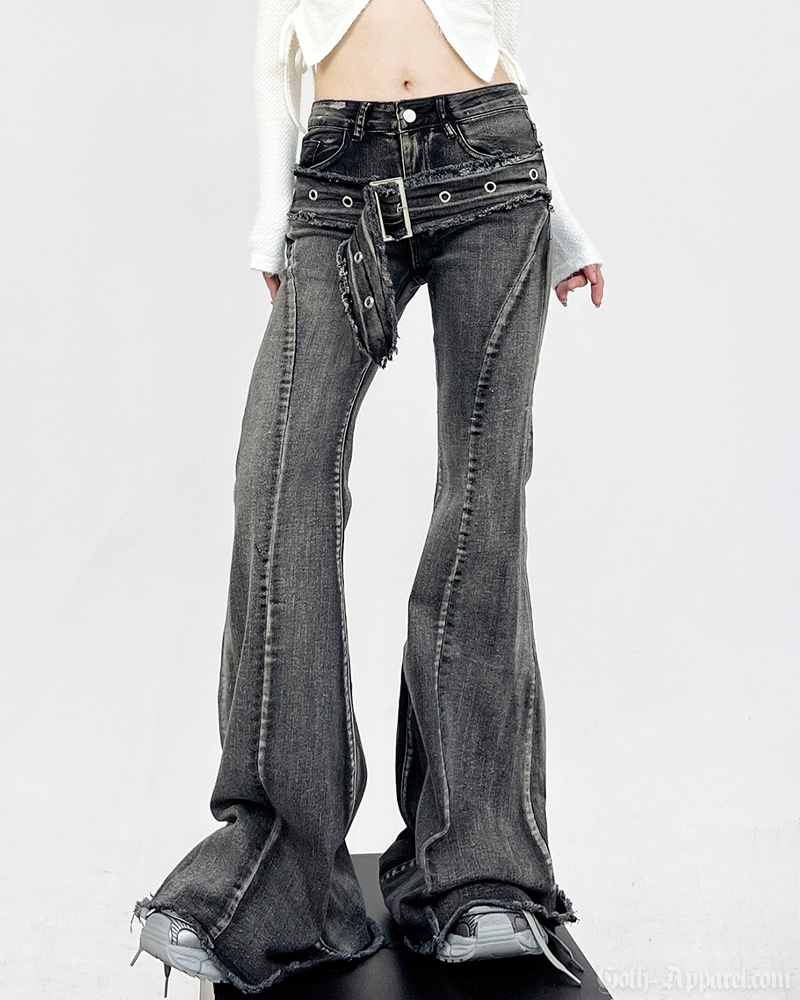 Add a sharp industrial touch to your outfits with our Flared Jeans With Belt