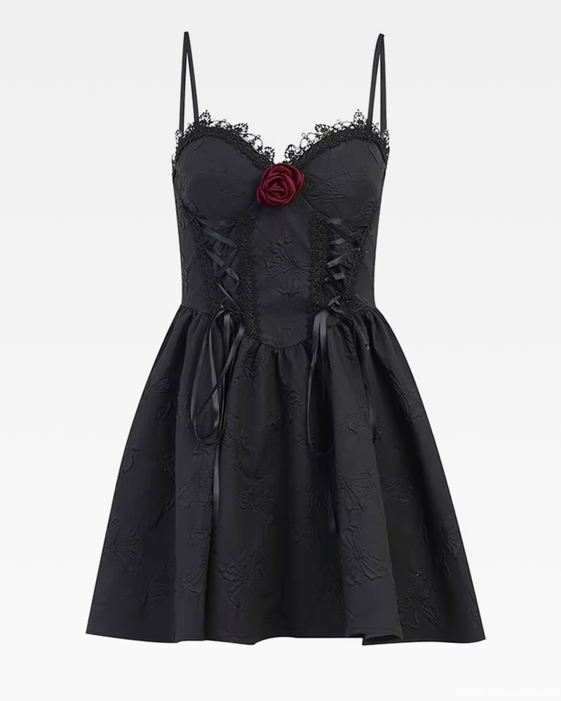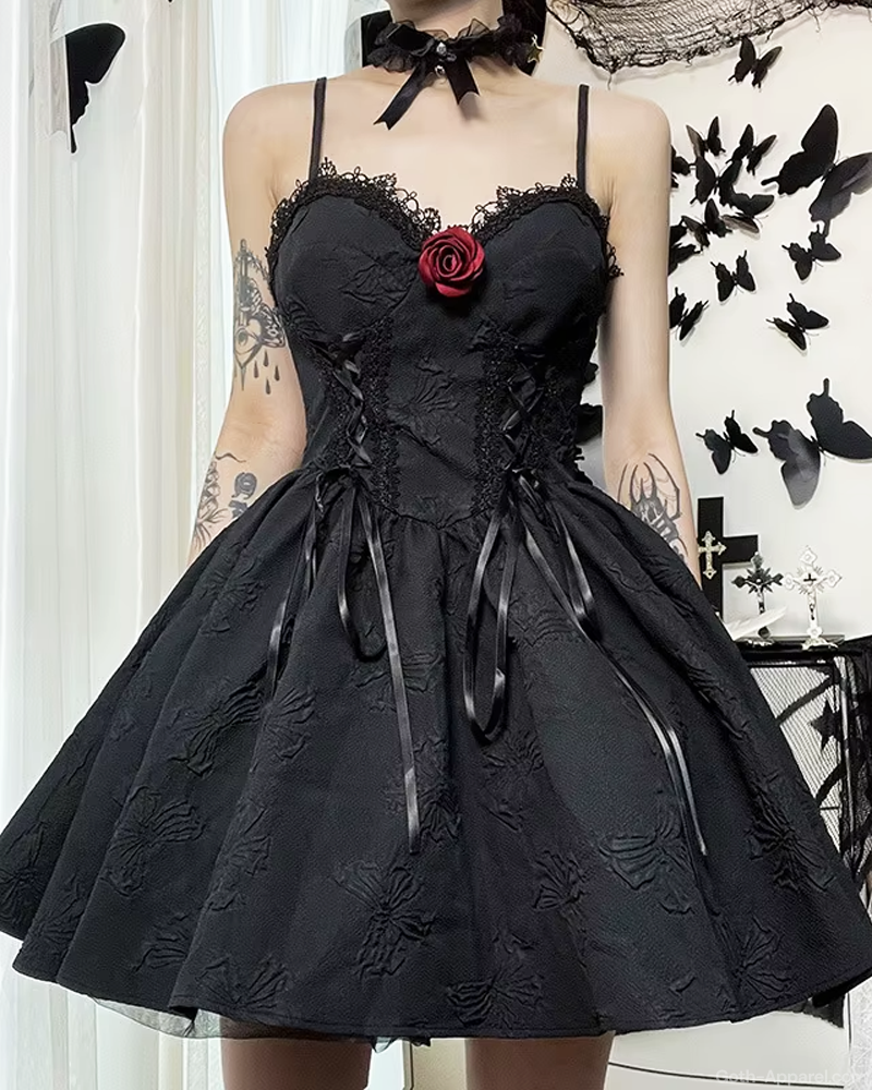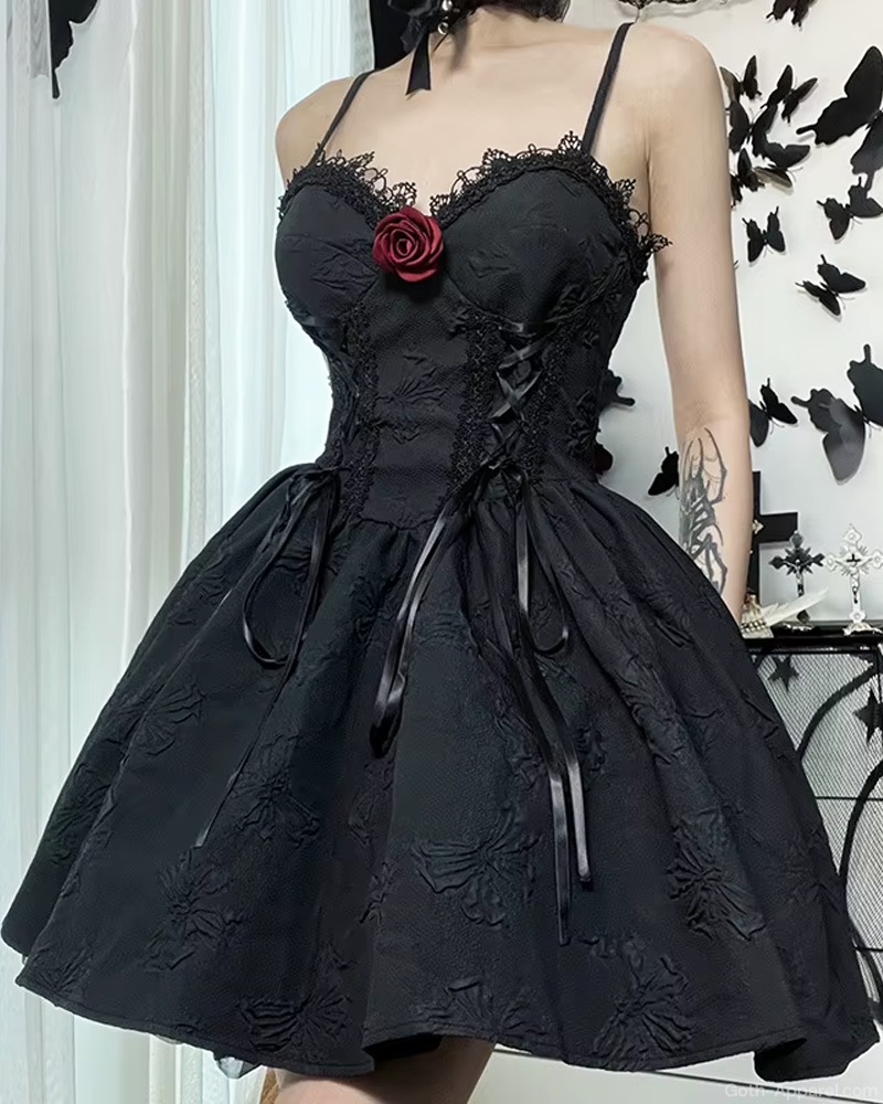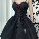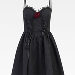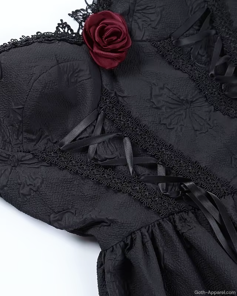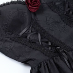 The structured bodice and flowing skirt give a timeless shape, while the rose detail adds a signature gothic touch. Wear this dress if you're not afraid to express your style with confidence.