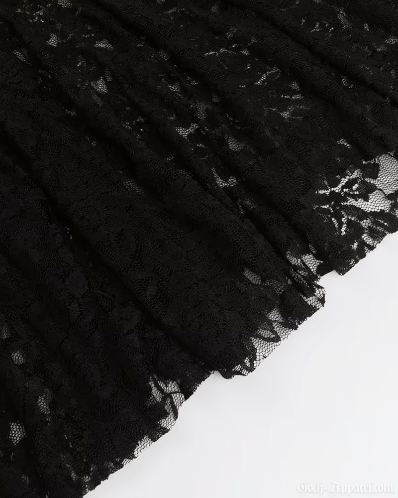 Featuring a lace cross panel and a flowing sheer skirt, this dress exudes both mystery and sophistication. Its attached hood and long bell sleeves will add a beautiful and mystical touch to your gothic look.