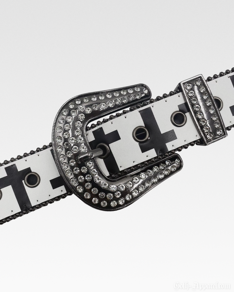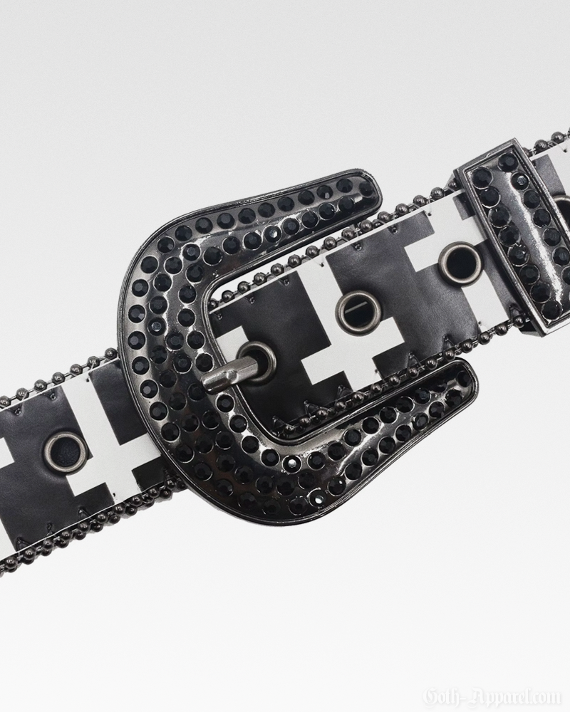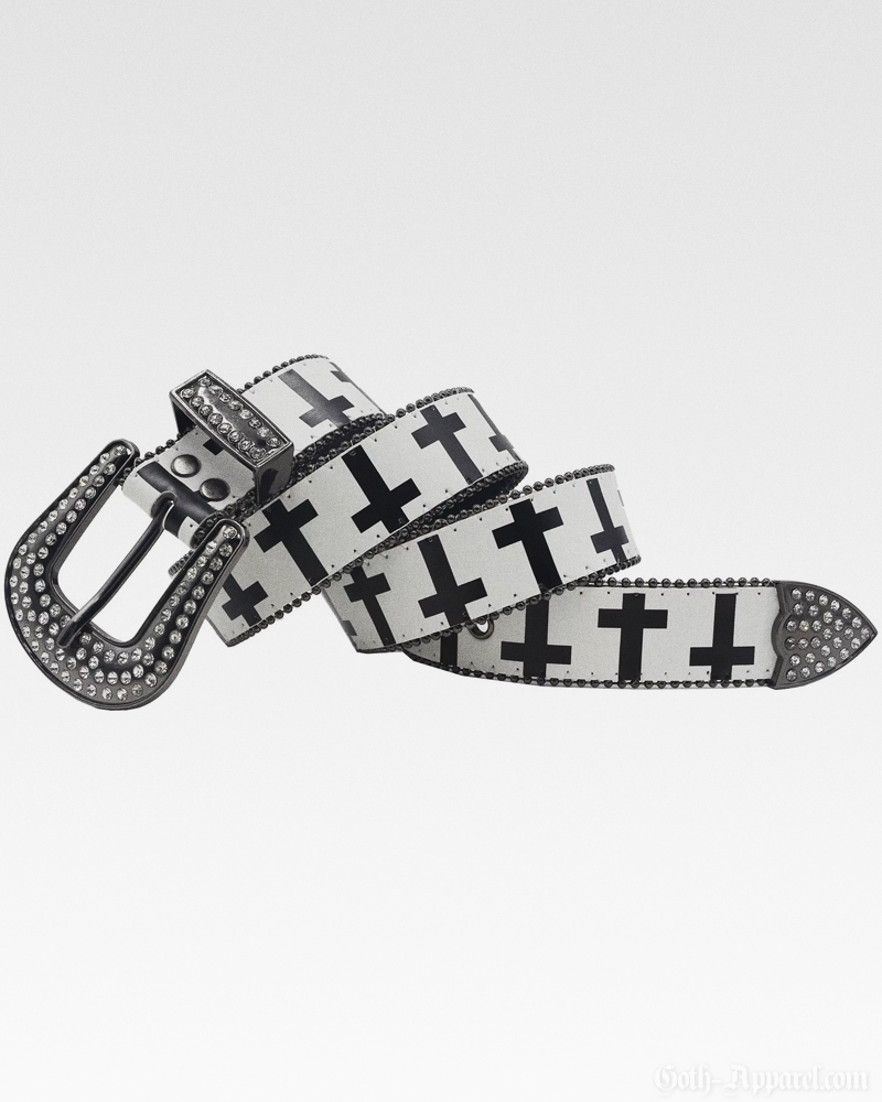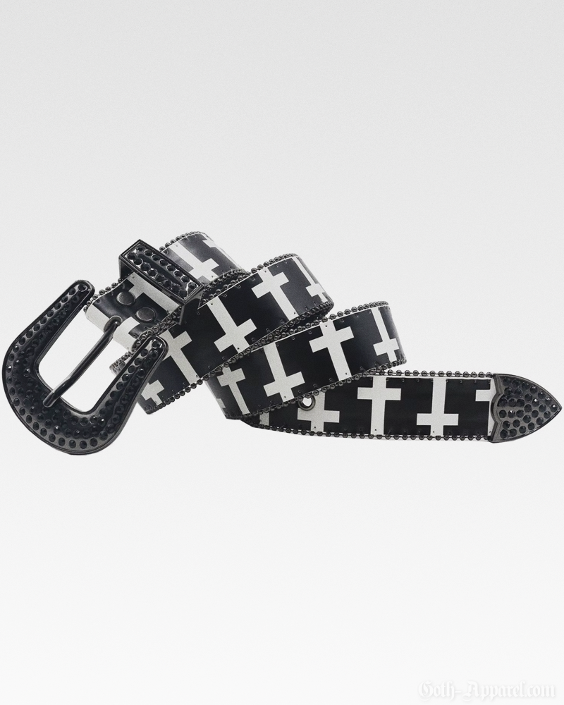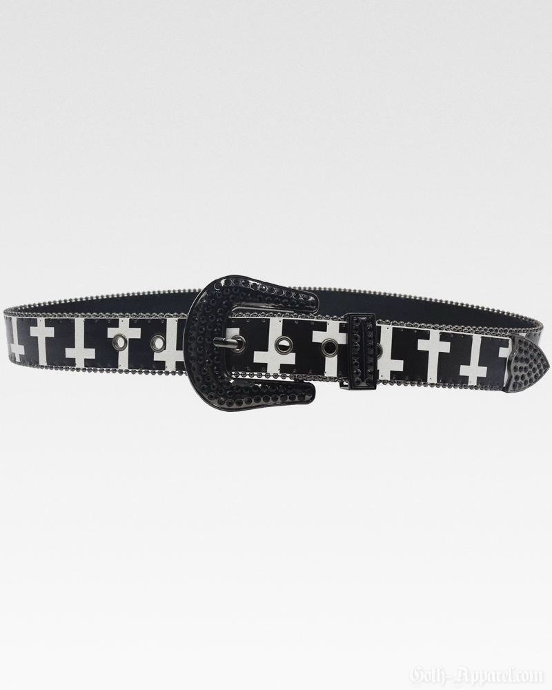 Designed with an eye-catching cross pattern and a rhinestone-studded western buckle, this Gothic Western Belt brings edgy detail to any look. Made from sturdy materials, it provides a reliable fit with adjustable sizing and multiple length options.