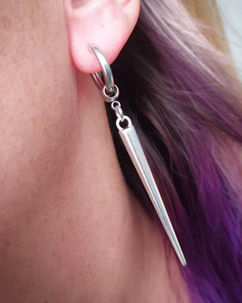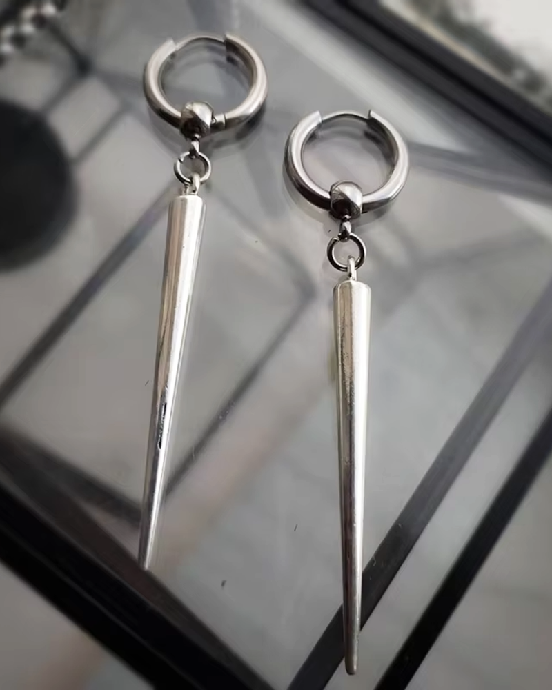 Make a sharp statement with these long spike earrings, blending minimalist design with a rebellious vibe. Their versatile unisex style makes them the perfect finishing touch for any alternative look.