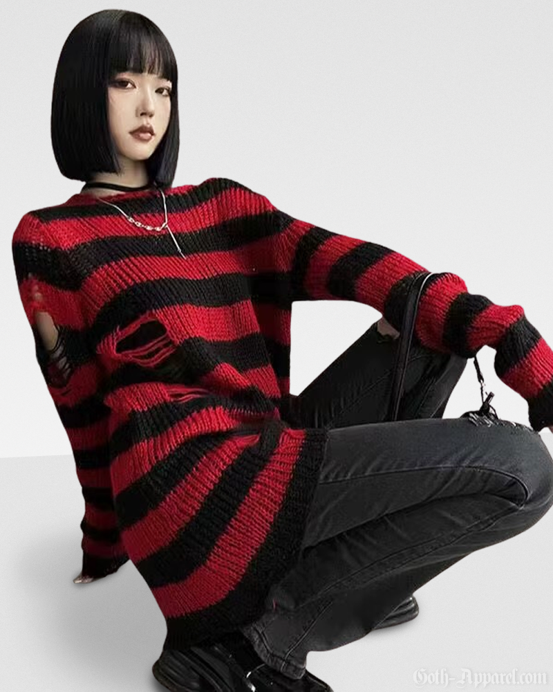 Bring grunge attitude to your wardrobe with our Red And Black Striped Sweater