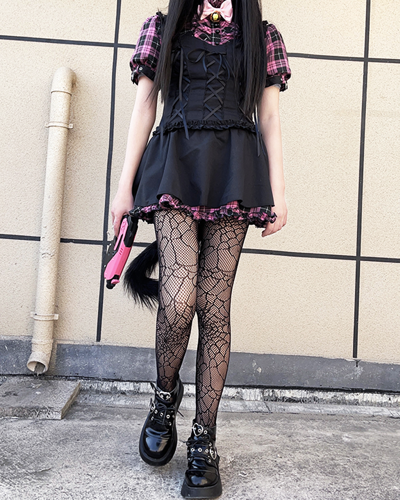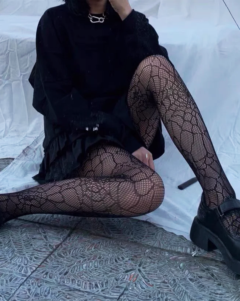 Elevate your alternative looks with these Spider Web Fishnets, designed to bring a dark and edgy vibe to your outfit. Featuring a detailed spider web pattern, these tights are perfect for adding a gothic twist whether paired with skirts, dresses, or layered under shorts. The unique design not only enhances your style but also makes your legs the centerpiece of your ensemble.